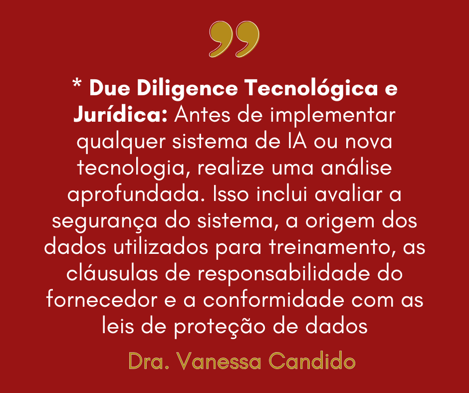 Para uma análise aprofundada sobre como a Inteligência Artificial pode impactar seu negócio e as melhores estratégias de proteção jurídica, entre em contato com a Vanessa Candido Advocacia e Consultoria. Estamos à disposição para construir um futuro digital seguro para sua empresa.